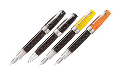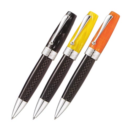 製造に18ヶ月を要するプレシャスセルロイドを使用した美しいボディが魅力的なミヤコレクションに、伝統的なセルロイドにカーボンファイバーボディとスターリングシルバーのコンビネーションが現代的なニューモデルが登場。