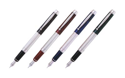 世界で唯一のノック式万年筆。 ISOT'99ステーショナリーオブザイヤー受賞。 |