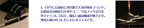 高蒔絵、研出平蒔絵、平蒔絵、蜻蛉塗などの日本古来から受け継がれてきた伝統の技が織りなす蒔絵の世界を筆記具の中に表現したシリーズです。 昭和初期に世界をアッといわせた蒔絵万年筆は、現在も日本文化を伝える代表といえるのではないでしょうか。 |