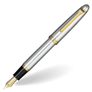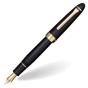 明治44年創業のセーラー万年筆が代表作として誇る万年筆「PROFIT」は、長い歴史の中で培ってきた技術と感性を凝縮して作り上げ、1978年に発売されました。「PROFIT]は、技術的にもデザイン的にも改良の余地のない、完成されたスタンダードと絶賛されています。奇をてらわないオーソドックスな流線型のボディは、絶妙のバランス感。手にする人に親しみと安心感を与えるとの、高い評価を頂いています。ステータス性も高い21Kペン先は、弾力性に富み、これぞ万年筆というしなやかな感触と滑らかな書き味をもたらします。 ペン先とのバランスを考えて作られた軸は、リラックスして筆記するのに適した太さになっていて、ペンの重心はキャップを尾部にはめるか外すかで調節して頂けます。 セーラーPROFITシリーズの顔ともいえる1本です。 いかにも万年筆といったイメージの大きめのボディ。しかしながら、グリップ部は、10〜12mmの円すい状で、決して太過ぎず、軽やかな書き味を作り出します。大きめのボディは、力が抜けやすいので、ヘビーユーザーにもお勧め。デスクワークに最適のタイプです。 |